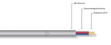 Круглый; проводники из бескислородной меди (OFC) 2 x 1,5mm2 (AWG15); OD=7mm; цвет оболочки: темно серый. None