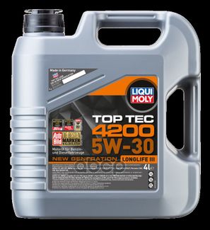 - Liqui moly 5w-30 Top Tec 4200 Sp C3 C2 4л (Нс-Синт.Мотор.Масло) Acea C3 Api Sn Mb-Freigabe 229.31 Mb-Freigabe 229.51 Porsche C30 Vw 504 00 Vw 507 00 Acea C2 Bmw Longlife-01 (Bis Mj 2018) Bmw Longlife-01 Fe (Bis Mj 2018) Bmw Longlife-04 (Bis Mj 2018) Fiat по выгодной цене 7 970 р. руб.;