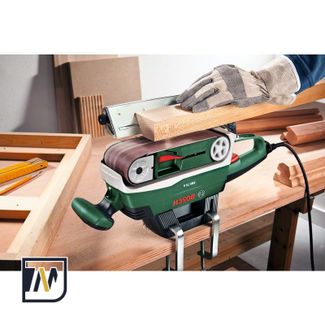 Представляем Вашему вниманию продуктивную ленточную шлифовальную машину BOSCH PBS 75 AE. Начнем с того, что она имеет систему зажима шлифленты с помощью рычага для простой и удобной замены последней. Центрирование и автоматическое натягивание ленты в совокупности с большой рабочей площадью помогут выполнять быструю работу с высоким качеством исполнения. Для комфорта оператора, производитель предусмотрел отвод пыли в специальный контейнер с микрофильтром или же в пылесос. Также возможно стационарное использование: простое крепление с помощью струбцин и универсальное крепление в подставке. Инструмент отлично сбалансирован и обладает хорошей эргономикой. Также BOSCH будет удобной в использовании не только для большинства людей, но и для левшей. Наличие регулировки оборотов значительно расширяет применение PBS 75 AE. Комплект: