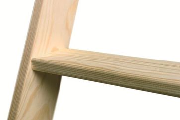 Складная чердачная лестница, деревянные элементы которой изготовлены из сосны.