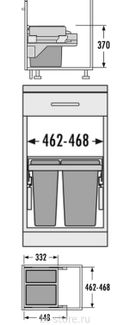 Встраиваемая система с двумя контейнерами 20 и 14 литров в шкаф под мойку, с креплением к выдвижному фасаду от 50 см, направляюще мягкого закрывания, производство Германия. None Возможен самовывоз. Есть доставка.