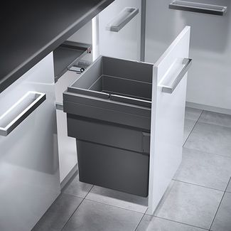 Комплектация: выдвижной каркас с синхронизированными направляющими полного выдвижения, 1 съемное пластиковое ведро объемом 55 л, крышка с противоскользящим ковриком на всю ширину системы, крепежная фурнитура. Габариты системы: высота - 544 мм, глубина - 400 мм. None