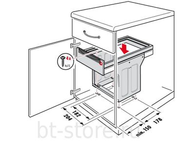 Выдвижная система с 2 ведрами 24л и 7л, для распашного шкафа, фасад от 300 мм, подходит по высоте для установки под мойку, производство Германия. None Возможен самовывоз. Есть доставка.