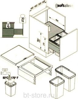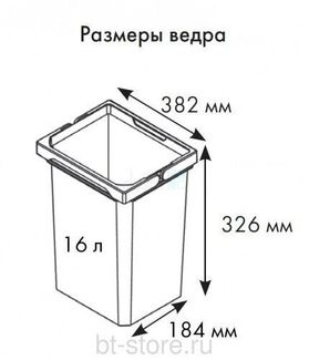 Комплект: 2 ведра по 16 л., рама c направляющими, крепления к фасаду, шаблон для установки, крышка-полка. Для корпуса 450 мм. None Возможен самовывоз. Есть доставка.