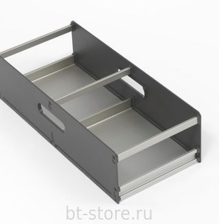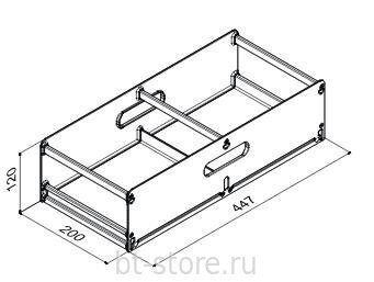 Предназначен для выдвижного ящика глубиной до 500 мм. Легко вынимается для переноски вместе с содержимым. Размер 447х200х120 мм. Дно и ручки выполнены из анодированного алюминия, боковины из темно-серого пластика. None Возможен самовывоз. Есть доставка.
