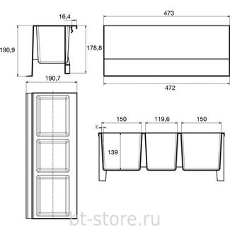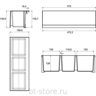 Система организации SIDEBOX для ящика выдвижного кухонного ящика, 3 емкости. Для глубины ящика до 500 мм. None Возможен самовывоз. Есть доставка.
