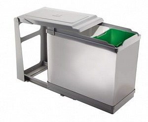 Система для мусора (16л+10л) на фасад от 300мм. При выдвижении ведра крышка автоматически открывается. None