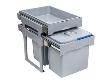 Комплектация: 2 съемных пластиковых ведра объемом по 15 л, 2 пластиковые крышки, пластиковые ручки, выдвижной пластиковый лоток, опорная пластиковая рама, шариковые направляющие полного выдвижения, крепежная фурнитура.Тех. размеры: высота 428 мм, глубина 486 мм. None