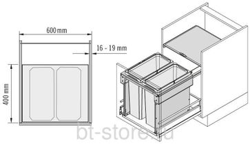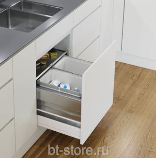 Для стандартного выдвижного ящика 600 мм. Система сортировки снабжена крепящейся ко дну ящика и к фасаду рамой (без направляющих), 2-мя контейнерами по 22 литра, а также крышкой-полкой. None Возможен самовывоз. Есть доставка.