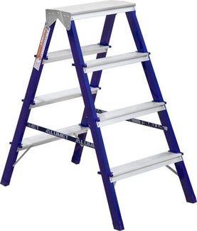 Характеристики к Стальная стремянка Алюмет MD 4 ступени двухсторонняя Высота последней ступени, м: 0,86 Рабочая высота, м: 2,86 Длина в сложенном виде, м: 0,94 Ширина, мм: 0,46 Кол-во ступеней: 2х4 Вес, кг: 4,2 Материал: Сталь+алюминий Стремянка стальная двухсторонняя Алюмет серии MD 4 ступени Стальной профиль размером 40х20 мм покрашен синей эмалью Алюминиевые рифленые ступени штртной 80 мм. Верхняя широкая площадка шириной 160 мм. Перлоновая стяжка перемычка увеличивает жесткость констркции ст...