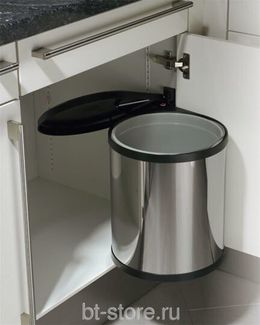 Встраиваемое ведро для мусора 15 литров, цилиндрической формы со стационарной крышкой, основной корпус из нержавеющей стали, внутреннее ведро 15л, крышка и механизм открывания из черного пластика. None Возможен самовывоз. Есть доставка.