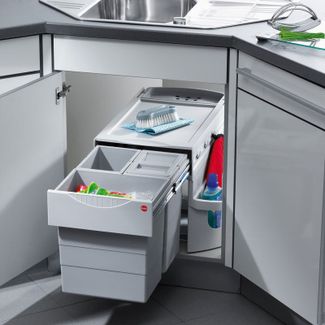 Комплектация: рама с вращающимся диском, направляющие с Soft-Control, сортировочный отсек с крышкой: 1 ведро 20л, 2 ведра по 10л, ведро 12,5л и 2 съемные корзины, набор для уборки: совок и щетка, фурнитура. None