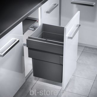 Контейнер объемом 55 литров для шкафа 450 мм, фасад крепится непосредственно к системе, полное выдвижение с механизмом мягкого закрывания, цвет темно-серый. None Возможен самовывоз. Есть доставка.