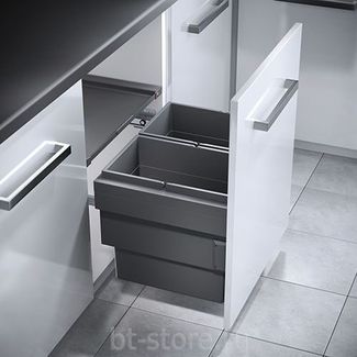 Выдвижная система с 2 ведрами по 28 литров. Вёдра и система цвета графит, для оснащения выдвижного ящика 600 мм. На направляющих мягкого закрывания, в комплекте крышка полка, производство Германия, гарантия 2 года. None Возможен самовывоз. Есть доставка.
