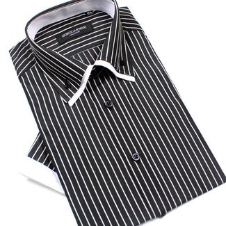 Рубашка мужская в черно-белую полоску. Рубашка Армани. Приталенная рубашка. Короткий рукав. Материал: 90% хлопок, 10% полиэстер. None