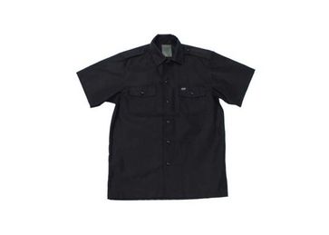 Мужская рубашка с короткими рукавами, черная, с погонами и двумя карманами на груди. Состав: 65 % полиэстер, 35 % хлопок. Цвет: черный None