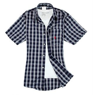 Мужские рубашки в клетку. Рубашки с коротким рукавом. Материал: х/б. None