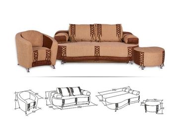 Размер дивана габаритный: 205х100х89 см Спальное место: 205х150 см Размер кресла габаритный: 92х85х79 см Размер пуфика: 65х78х43 см Механизм раскладки - «Еврокнижка». Мягкие элементы сиденья выполнены из эластичного пенополиуретана и пружинного блока. В диване есть короб для хранения вещей. В комплект входит: диван, кресло, пуфик. None Есть доставка. Доставка: 70.0UAH