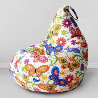Среднее Кресло груша мешок Бабочки, размер XXL (универсальный), максимальная нагрузка 100 кг. Материал мебельный хлопок. Экологичная ткань. Мягкий, удобный и уютный! None