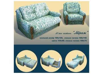 Общий размер: 180105 см, спальное место: 190140, кресло 105*105 None Есть доставка. Доставка: 70.0UAH