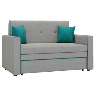 Диван-кровать Найс 120. Цвет - серо-бежевый/бирюзовый. Ткань - ТД 112 (Алма 25/Алма 21). Размер в сложенном состоянии (ШхГхВ) 146х80х84 см., в разложенном состоянии - 146х200х77 см. Спальное место (ШхГ) 120х195 см. Механизм трансформации - выкатной. Короб для белья в комплекте. Модную щегольскую эстетику диван-кровати придают утяжки с пуговками на спинке, декоративные кант и подушечки в контрастном цвете. None Есть доставка.