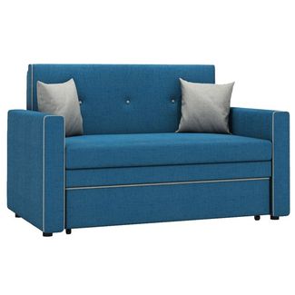 Диван-кровать Найс 120. Цвет - синий/серо-бежевый. Ткань - ТД 114 (Алма 22/Алма 25). Размер в сложенном состоянии (ШхГхВ) 146х80х84 см., в разложенном состоянии - 146х200х77 см. Спальное место (ШхГ) 120х195 см. Механизм трансформации - выкатной. Короб для белья в комплекте. Модную щегольскую эстетику диван-кровати придают утяжки с пуговками на спинке, декоративные кант и подушечки в контрастном цвете. None Есть доставка.
