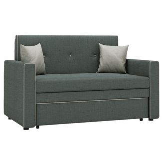 Диван-кровать Найс 120. Цвет - тёмно-серая/серо-бежевая. Ткань - ТД 172 (Алма 24/Алма 25). Размер в сложенном состоянии (ШхГхВ) 146х80х84 см., в разложенном состоянии - 146х200х77 см. Спальное место (ШхГ) 120х195 см. Механизм трансформации - выкатной. Короб для белья в комплекте. Модную щегольскую эстетику диван-кровати придают утяжки с пуговками на спинке, декоративные кант и подушечки в контрастном цвете. None Есть доставка.