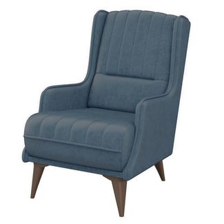 Кресло Болеро. Обивка - искусственная замша ТК 164 Легион океан. Размер (ШхГхВ) 68х96х98 см. Материал - ламинированная ДСП, ДВП, фанера, деревянный брус, пенополиуретан, опоры - пластик. Дополнение - трёхполосная резиновая лента. Высокая спинка с «крылышками» по бокам, переходящими в подлокотники, глубокое сиденье, невысокие ножки - креативный вариант «каминного» кресла. None Есть доставка.