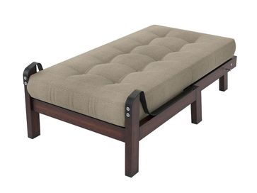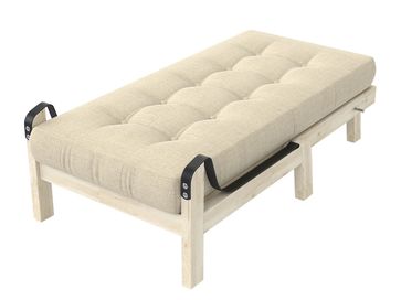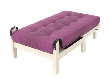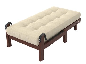 Характеристики: <br> Материал каркаса: массив сосны.<br> Основание: реечное, деревянное.<br> Наполнение: пенополиуретан, холлкон.<br> Максимальная нагрузка: 140 кг.<br> Размер спального места (ШхГ): 650 х 1400 мм.<br> Высота спального места: 420 мм.<br> Высота просвета над полом: 230 мм.<br> Чехол несъемный.<br>