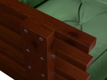 Характеристики: <br> Материал каркаса: массив сосны.<br> Наполнение: пенополиуретан, холлкон.<br> Максимальная нагрузка: 140 кг.<br> Высота просвета над полом: 220 мм.<br> Чехлы на сиденье и подушке несъемные.<br> None Страна производства: Россия