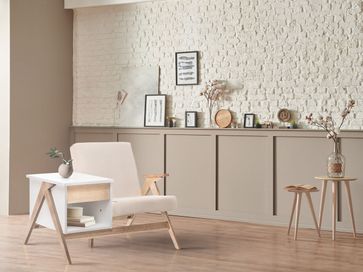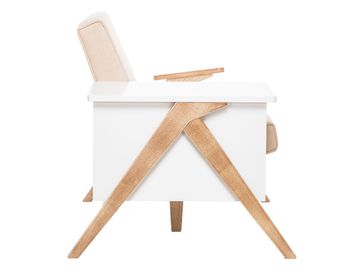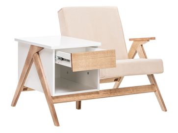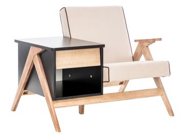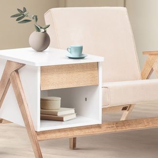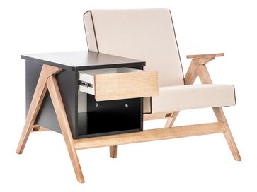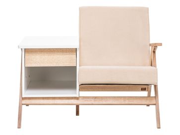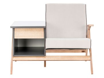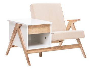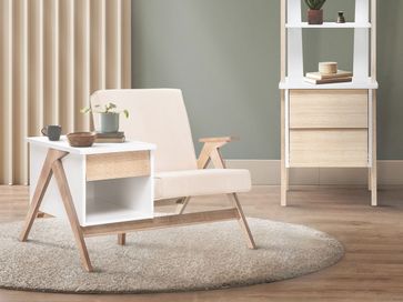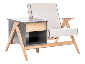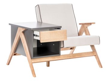 Кресло с тумбой Сканди практично сочетает в себе два предмета мебели. Спинка расположена под углом, что позволит с удобством устроиться для чтения и отдыха. Небольшая тумбочка с нишей и выдвижным ящиком удобна для хранения полезных мелочей.<br>