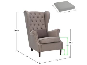 Характеристики: <br> Материал каркаса: фанера.<br> Наполнение мягких элементов: поролон, синтепон, синтешар.<br> Материал опор: массив бука.<br> Высота опор: 150 мм.<br> Размер сиденья (ВхГ): 550 х 580 мм.<br> Толщина сиденья: 465 мм.<br> Максимальная нагрузка: 120 кг.<br>