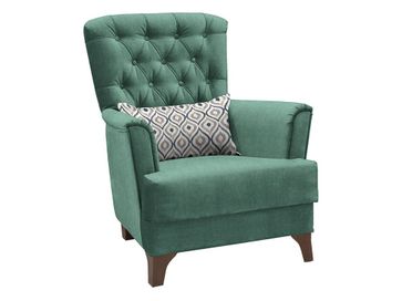 Характеристики: <br> Материал каркаса: ЛДСП, фанера и брус хвойных пород.<br> Материал ножек: пластик.<br> Наполнение мягких элементов: пенополиуретан, плоские пружины «змейка», спанбонд 80, периотек.<br> Наполнение подушки: поролоновая крошка и полиэфирное волокно.<br> Высота передних опор: 120 мм.<br> Высота задних опор: 100 мм.<br> Максимальная ширина кресла: 850 мм.<br> Ширина сиденья: у спинки 430 мм, ближе к краю 540 мм.<br> Глубина сиденья: до спинки 560 мм, до подушки 460 мм.<br> Высота от пола до сиденья: 420 мм.<br> Габариты декоративной подушки (ШхВ): 560 х 300 мм.<br> Максимальная нагрузка на кресло: 100 кг.<br> None Страна производства: Россия