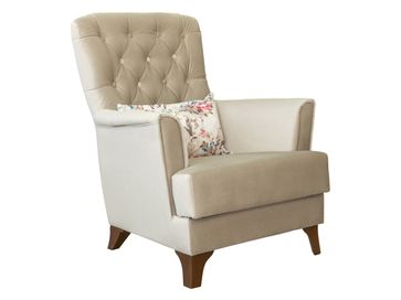 Очаровательное кресло Ирис в классическом исполнении гармонично дополнит интерьеры в стилях прованс и классика. Его изящная спинка декорирована каретной стяжкой с большими пуговицами, а мягкие подлокотники имеют утонченную форму. Для наибольшего удобства в комплект входит мягкая приспинная подушка.<br>