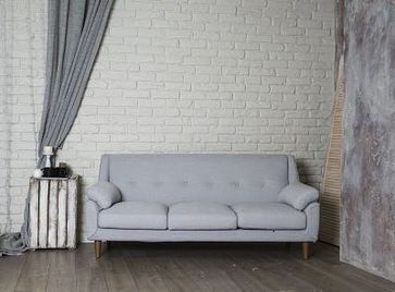 Трехместный Каркас - эвкалипт, сосна, МДФ Ножки - дуб Материал обивки - полиэстер 75%, лен 25%. Плотность ткани 380гр/м2. Наполнитель подушек ППУ Цвет подушек и обивочного материала светло-серый