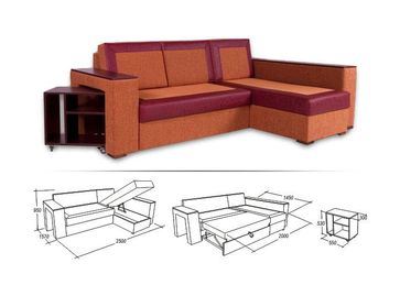 Размеры: 250х157х95 см, спальное место: 200х145 см В модели используется подъемный механизм Механизм раскладки - «Дельфин». На мягкие элементы сиденья устанавливаются пружинные блоки. В диване есть ниша для хранения вещей. None Есть доставка. Доставка: 70.0UAH