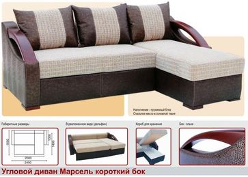 - Угловой диван Марсель короткий бок" по выгодной цене 5 642 р. руб.;