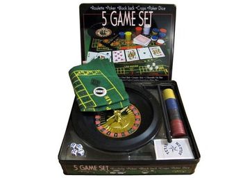 Набор из 5 игр(рулетка, кости, покер, Black Jack (21), Craps (крепс)) в металлической банке с сукном. None Есть доставка. Доставка: 290.0RUR