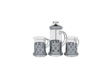 Чайный/кофейный набор REGENT INOX 93-FR-03-03-350 (френч-пресс + 2 стакана) - отличный подарок на праздник близкому человеку или коллеге. Причудливо вырезанные подстаканники создадут необыкновенную атмосферу во время чаепития. None
