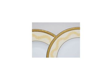 Жизнеутверждающая деколь коллекции Ривьера это несомненный плюс хозяйке при сервировке праздничного стола. Прекрасно сочетающиеся бежевый и золотой на белоснежном фоне украсит любое торжество. В набор входят: 6 - суповых 6 - закусочных 6 - подставочных тарелок. None