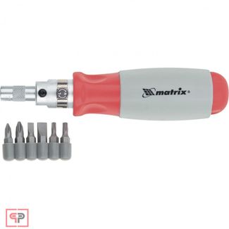 Matrix Отвертка реверсивная, силовой элемент под ключ, набор бит, CrV, 6 шт Matrix