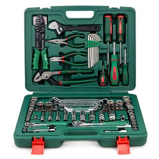 Назначение Универсальный набор инструментов TK-148 от HANS станет для Вас верным помощником при проведении большинства автомобильных ремонтных работ. В частности, он будет полезен при работе с электрикой благодаря наличию в нем различных шарнирно-губцевых инструментов. Описание В набор инструментов TK-148 входят 148 предметов с посадочными квадратами ?" и 3/8". Для их изготовления используется первоклассная хромванадиевая сталь — прочный и долговечный материал. Особенности Отвертки, ключи-трещотки и шарнирно-губцевые инструменты из набора инструментов TK-148 обладают удобными маслобензостойкими ручками, которые не выскальзывают из рук. Это делает процесс работы комфортным и приятным. Набор инструментов ТК-148 поставляется в удобном пластиковом кейсе, который закрывается на защелки. Каждый предмет в нем имеет свою ячейку с фиксатором, что обеспечивает защиту от потери инструментов и облегчает их поиск и хранение. None