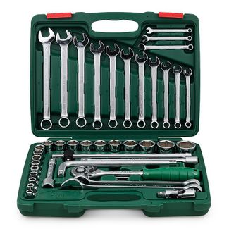 Назначение В комплектацию предназначенного для проведения авторемонтных работ набора инструментов общего назначения TK-42 от HANS входят 42 предмета. Среди них – 16 комбинированных ключей и 19 торцевых головок наиболее ходовых размеров, что делает этот набор особенно полезным при работе с агрегатами и ходовой частью автомобиля. Описание В наборе TK-42 представлены инструменты с посадочным квадратом ?". Они изготовлены из высококачественной хромванадиевой стали — высокопрочного материала, идеально подходящего для изготовления инструментов. Особенности Трещоточный ключ из набора инструментов TK-42 обладает маслобензостойкой ручкой, которая не выскальзывает из рук в процессе работы и отличается удобством и практичностью. Набор инструментов TK-42 помещен в удобный пластиковый кейс зеленого цвета с защелками. В нем каждый предмет находится в индивидуальной ячейке с фиксатором. Это оптимизирует процессы поиска и хранения инструментов и предотвращает их потерю.