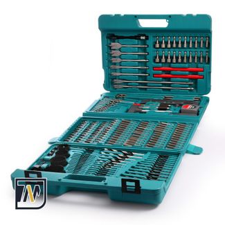 В состав набора входит46 x сверл по металлу,13 x сверла для бетона,8 x сверла для дерева,5 x плоских сверл по дереву,2 x длинные сверла по дереву плоские,52 Биты x 50 мм,52 Биты x 25мм,20 x торцевых ключей,3 x ограничители глубины,1 x шестигранный ключ,4 x режущие по круги1 x адаптер для кругов,1 x 3,5 м (12ft) мера,1 x уровень,1 x отвертка Т-образный с держателем для бит магнитные,2 х Карандаши1 x гибкий Вал,2 x зубило,1 x держатель для бит с магнитным наконечником,1 x пластиковый корпус None Есть доставка.