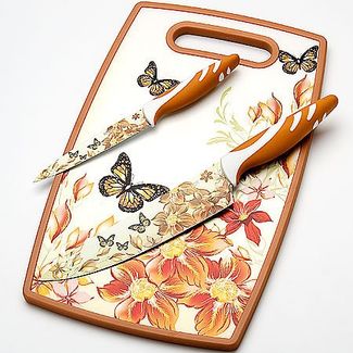 Набор ножей 3 пр МВ (х12). Цвет: белый, оранжевый, красный. Материал лезвий: нержавеющая сталь. Покрытие: антибактериальное, Non-Stick. Материал ручек: полипропилен, каучук. Материал доски: МДФ, полипропилен. Нож слайсер: 33 см (8”). Нож универсальный: 24 см (5”). Размер доски: 37 х 23 х 1,34 см. Размер упаковки: 38 х 24 х 4 см. Вес: 910 г. Страна производитель: Китай. Набор MAYER& BOCH из 2-х ножей с лезвиями из высококачественной нержавеющей стали станет незаменимым помощником на вашей кухне. Лезвия имеют специальное антибактериальное Non-Stick покрытие, предотвращающее прилипание продуктов к лезвию ножа и обеспечивающее свежесть и гигиеничность продуктов. Лезвия ножей украшены цветным рисунком. Сечение ножей - клинообразно, что позволяет режущей кромке клинка быть продолжительное время острой. Поверхность клинков легко моется, не впитывает и не «передает» запахи пищи при параллельной нарезке различных продуктов. Набор ножей идеально подойдет для резки как мяса и рыбы, так и фруктов и овощей. Эргономичная рукоятка каждого изделия удобно ложится в ладонь, обеспечивая безопасную работу, комфортное положение в руке, надежный захват и не дает ножам скользить при использовании. Также в комплекте идет разделочная доска с красочным покрытием, имеющим 3-D эффект. Ножи мыть вручную теплой водой с мягким моющим средством. После мытья вытереть насухо. None