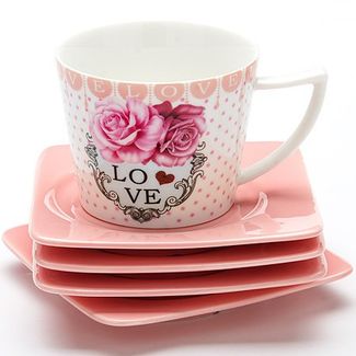 Кофейный набор 12 пр LR (х16). Чашка (6 шт)+блюдце (6 шт). Материал: керамика. Цвет блюдец: розовый. Рисунок на чашках: розы. Чашка: D 6,5 х 5 см/ 100 мл. Блюдце: D 10 см. Размер упаковки: 28,5 х 20 х 7 см. Упаковка: коробка. Вес: 1,39 кг. Страна производитель: Китай. Кофейный набор на 6 персон выполнен из высококачественной керамики. Оригинальный дизайн набора настроит на позитивный лад и подарит хорошее настроение с самого утра. На чашки нанесен рисунок в виде роз и надпись «LOVE», цветные блюдца квадратной формы. Набор упакован в стильную подарочную коробку. Внутренняя часть коробки задрапирована белой атласной тканью. Каждый предмет надежно зафиксирован внутри коробки благодаря специальным выемкам. Кофейный набор - идеальный и необходимый подарок для вашего дома и для ваших друзей в праздники, юбилеи и торжества! Он также станет отличным корпоративным подарком и украшением любой кухни. Подходит для мытья в посудомоечной машине. В наборе: 6 кофейных чашек, 6 блюдец. None