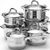 Набор кухонной посуды. Материал: нержавеющая сталь, стекло. Толщина стенок: 0,5 мм. Дно: индукционное. Ручки: нержавеющая сталь. Крышка: стекло, нержавеющая сталь. Ручка крышки: нержавеющая сталь. Размер упаковки: 48,5 х 27,6 х 22,5 см. Диаметр: 16 см,16 см,18 см, 18 см, 20 см, 24 см. Объем кастрюль: 2,1 л 2,9 л 2,9 л 3,9 л 6,6 л. Объем сотейника: 2,1 л. Вес: 7,2 кг. Количество: 12 предметов. Страна производитель: Китай. Набор кастрюль выполненных из нержавеющей стали, состоит из трех кастрюль разного объема с крышками. Это материал, из которого в течение нескольких десятилетий во всем мире производятся столовые приборы, кухонные инструменты и различные аксессуары. Этот материал обладает высокой стойкостью к коррозии и кислотам. Прочность, долговечность и надежность этого материала, а также первоклассная обработка обеспечивают практически неограниченный запас прочности. Кастрюли имеют многослойное капсульное дно с алюминиевым основанием, которое быстро и равномерно накапливает тепло и также равномерно передает его пище. Такое дно позволяет готовить блюда с минимальным количеством воды и жира, сохраняя при этом вкусовые и питательные свойства продуктов. Применение технологии многослойного дна создает эффект удержания тепла - пища готовится и после отключения плиты благодаря термоаккумулирующим свойствам посуды. Диаметры изделий соответствуют общепринятым размерам конфорок бытовых плит. Кастрюли оснащены удобными металлическими ручками, которые не нагреваются в процессе приготовления пищи. Крышки изготовлены из жаростойкого стекла, оснащены ручками, отверстиями для выпуска пара и металлическим ободом. Можно использовать на газовых, электрических, галогенных, стеклокерамических, индукционных плитах. Можно мыть в посудомоечной машине. None