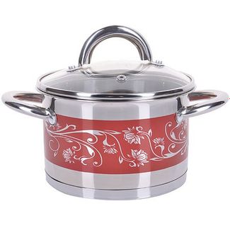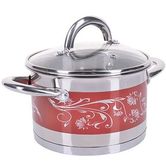 Кастрюля с крышкой 2 пр МВ(х12). Материал: нержавеющая сталь. Цвет: красный, цветочный узор. Диаметр: 16 см. Объем: 2 л. Дно: индукционное. Крышка: стекло, сталь. Ручки: сталь. Размер упаковки: 22 х 18 х 13 см. Вес: 1,26 кг. Страна производитель: Китай. Кастрюля MAYER& BOCH изготовлена из высококачественной нержавеющей стали, имеет многослойное термоаккумулирующее дно с прослойкой из алюминия, которое обеспечивает равномерное распределение тепла. Прозрачная крышка, выполненная из термостойкого стекла, позволяет следить за процессом приготовления пищи, а нежный цветной рисунок на стенках не оставит равнодушной ни одну хозяйку. Ручки из нержавеющей стали надежно крепятся к корпусу. Кастрюля подходит для всех видов плит включая индукционные. Подходит для мытья в посудомоечной машине. В комплекте 2 предмета: кастрюля, крышка. None