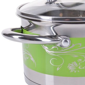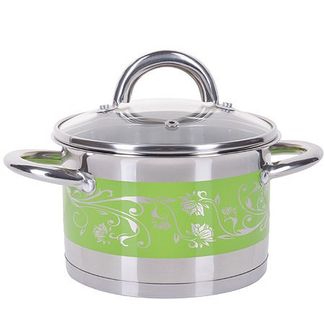 Кастрюля с крышкой 2 пр МВ(х12). Материал: нержавеющая сталь. Цвет: зеленый, цветочный узор. Диаметр: 16 см. Объем: 2 л. Дно: индукционное. Крышка: стекло, сталь. Ручки: сталь. Размер упаковки: 22 х 18 х 13 см. Вес: 1,26 кг. Страна производитель: Китай. Кастрюля MAYER& BOCH изготовлена из высококачественной нержавеющей стали, имеет многослойное термоаккумулирующее дно с прослойкой из алюминия, которое обеспечивает равномерное распределение тепла. Прозрачная крышка, выполненная из термостойкого стекла, позволяет следить за процессом приготовления пищи, а нежный цветной рисунок на стенках не оставит равнодушной ни одну хозяйку. Ручки из нержавеющей стали надежно крепятся к корпусу. Кастрюля подходит для всех видов плит включая индукционные. Подходит для мытья в посудомоечной машине. В комплекте 2 предмета: кастрюля, крышка. None