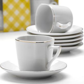 Кофейный набор 12 пр LR (х12). Чашка (6 шт)+блюдце (6 шт). Материал: фарфор. Цвет: белый, золотая кайма. Чашка: D 6 х 5,5 см/ 90 мл. Блюдце: D 10,5 см. Размер упаковки: 27,5 х 22,2 х 6,5 см. Упаковка: коробка. Вес: 1,23 кг. Страна производитель: Китай. Кофейный набор на 6 персон LORAINE выполнен из высококачественной керамики - материала безопасного для здоровья и надолго сохраняющего тепло напитка.Несмотря на свою внешнюю хрупкость, каждый из предметов набора обладает высокой прочностью и надежностью. Элегантный классический дизайн с тонкой золотой каймой делает этот кофейный набор прекрасным украшением любого стола. Набор аккуратно упакован в подарочную упаковку, поэтому его можно преподнести в качестве оригинального и практичного подарка для своих родных и самых близких. В наборе: 6 кофейных чашек, 6 блюдец. Подходит для мытья в посудомоечной машине. None